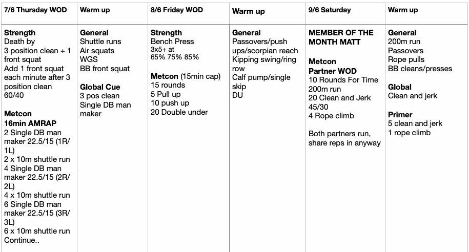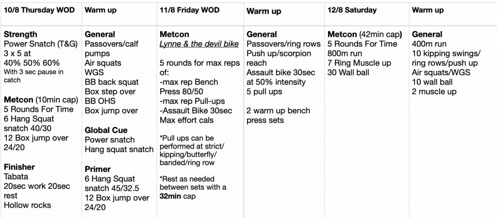 for our Saturday WODs and competition teams.