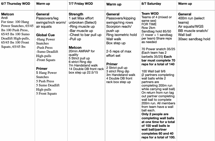 Even if you’re not doing the WODs come on down and support the crew, we want the whole CFC community present throughout the day. The more the merrier.